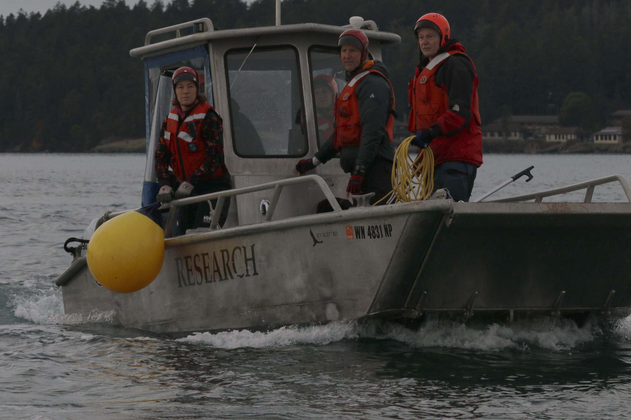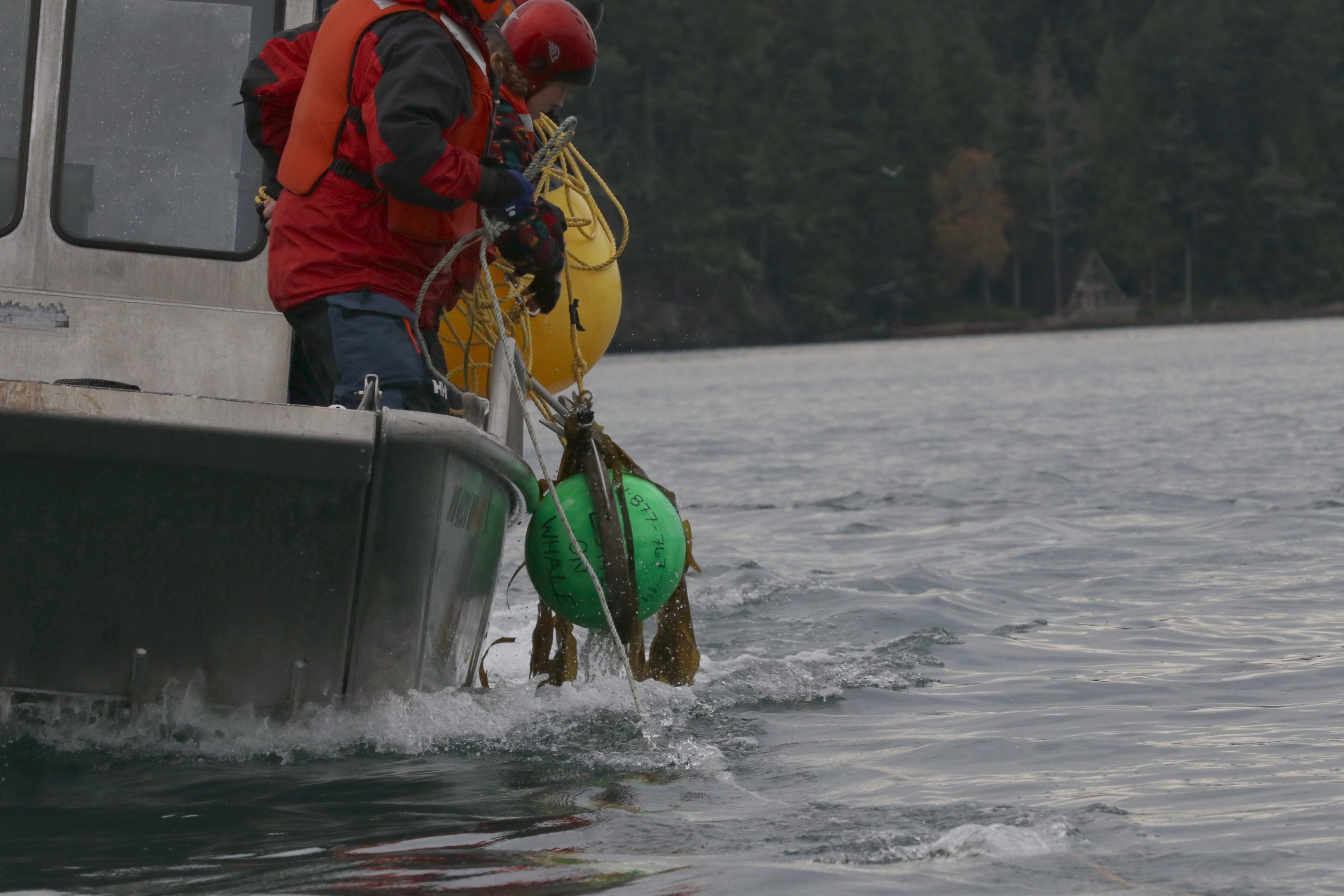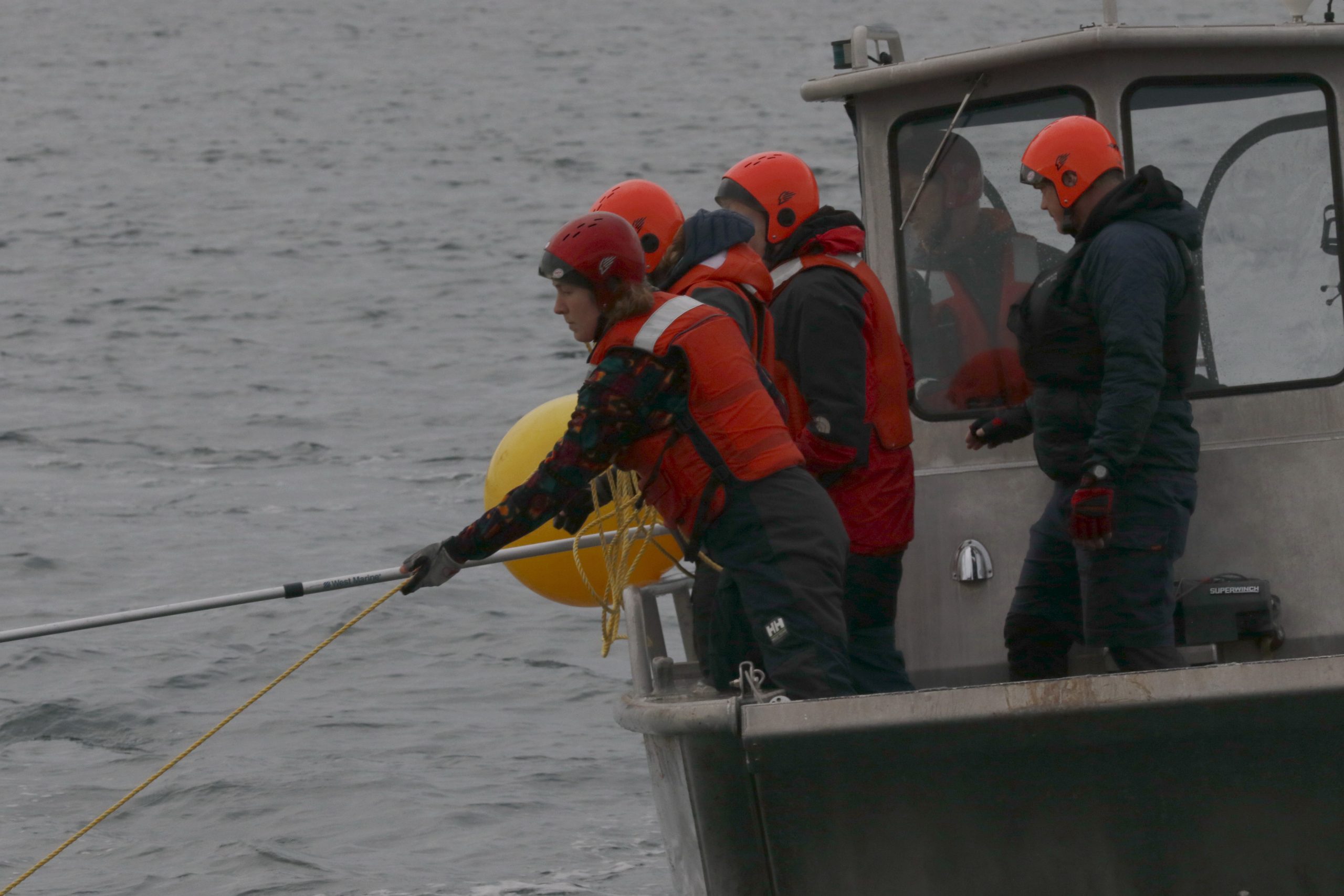 The Large Whale Entanglement Response Team from San Juan County trained with one of Cascadia’s advanced responders in early November. The multi-day training included on-water approaches from R/V Buzzard to attach a telemetry buoy to the entangling gear using a grapple and control line.