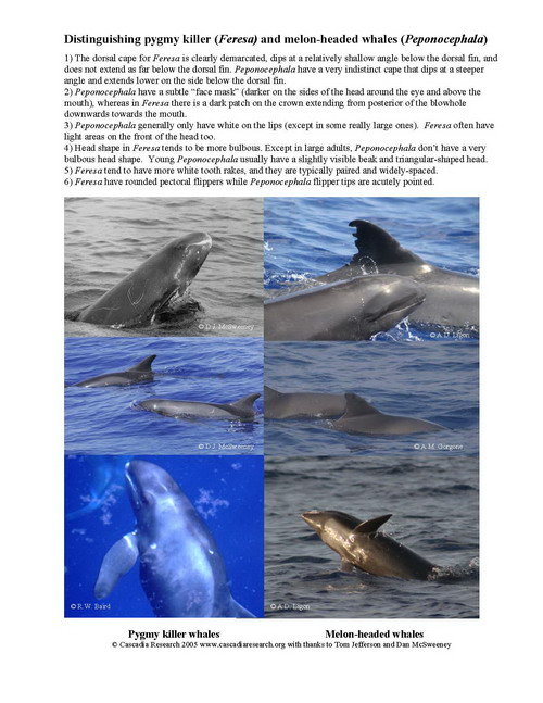 - Baird, R.W. 2010. Pygmy killer whales (Feresa attenuata) or false killer whales (Pseudorca crassidens)? Identification of a group of small cetaceans seen off Ecuador in 2003. Aquatic Mammals 36:326-327. DOI 10.1578/AM.36.3.2010. Download PDF copy