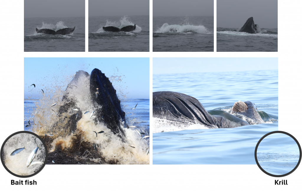 Humpbacks feed primarily on krill and small schooling fish (anchovies, sardines, herring, sand lance).