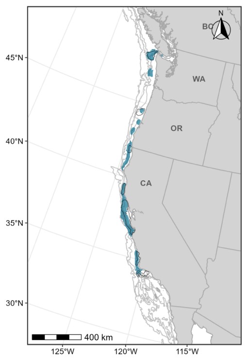 California, Oregon, Washington (feeding grounds)